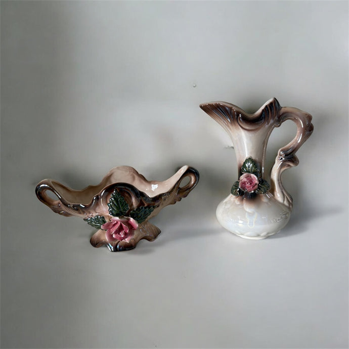 Vintage Champion Art Pottery Lustre Decorative Bowl Pitcher Set Pink Roses