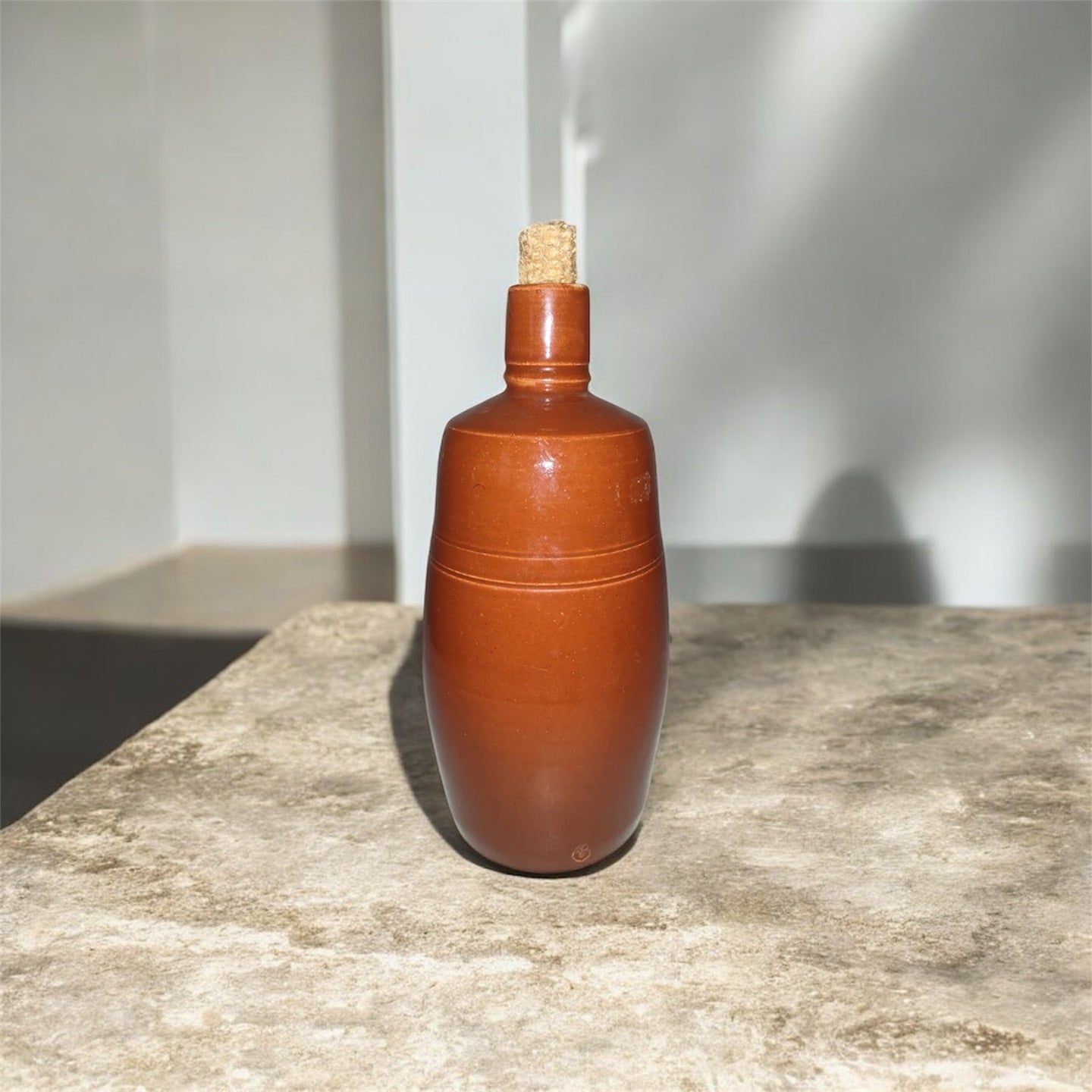Experimente la belleza vintage y la artesanía de calidad de esta botella de vino de cerámica Portugal Red Vase Lancers de los años 70. Fabricada en cerámica de color marrón rojizo intenso, esta botella lleva el sello de un "6" único y conserva el corcho original, lo que la convierte en una adición perfecta a cualquier colección de botellas de vino.