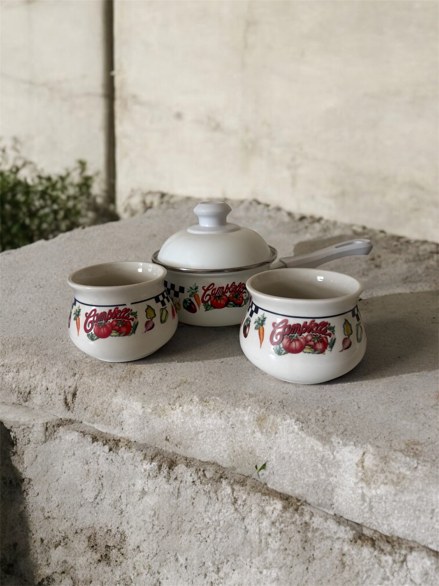 This vintage Gibson Campbell's Soup Saucepan Pot is a must-have for collectors of advertising and food & beverage items. Made of porcelain enamel on steel, this pot is white in color and was created in 1997. It features the iconic Campbell's Soup logo and is an original piece, perfect for those who appreciate authentic memorabilia.