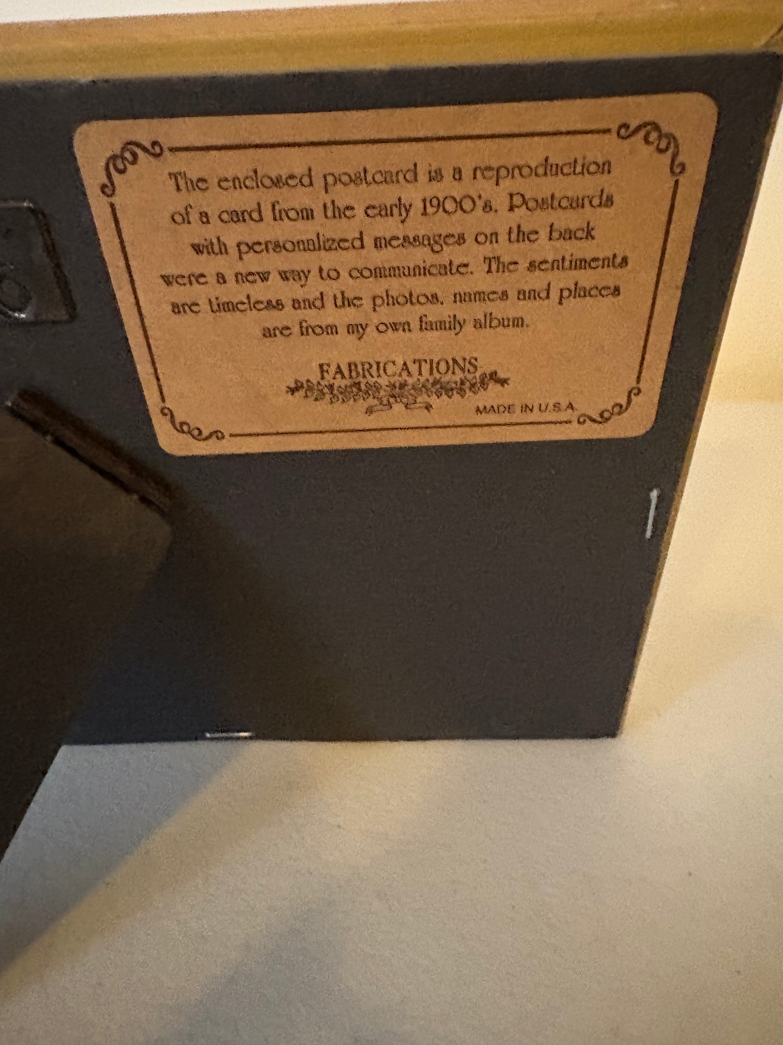 This Vintage Art By Fabrications- Reproduction is a true slice of history. Made in USA, it features a wood frame and measures 8x6. The enclosed postcard is a faithful reproduction from the early 1900s, giving you a glimpse into the past. Add a touch of vintage charm to your décor with this unique piece.