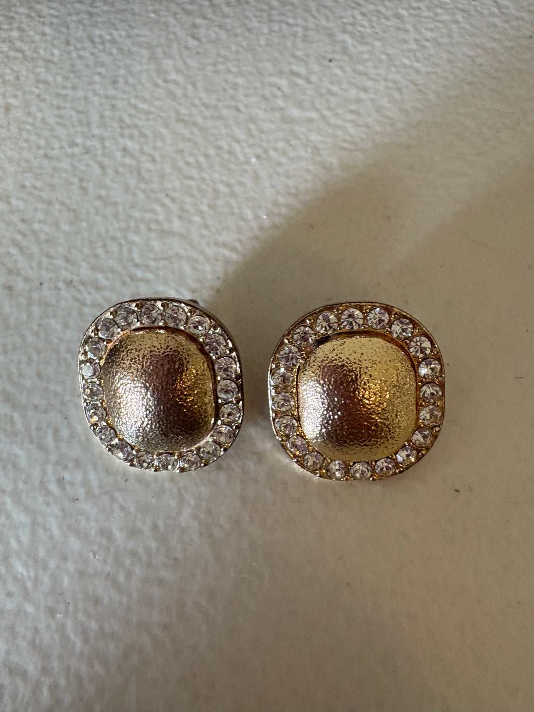 Add a touch of vintage glamour to your look with these stunning gold tone clip on earrings. Adorned with sparkling rhinestones, these earrings are the perfect accessory for any elegant ensemble. Clip on ease adds versatility and comfort. Elevate your style with these luxurious earrings.
